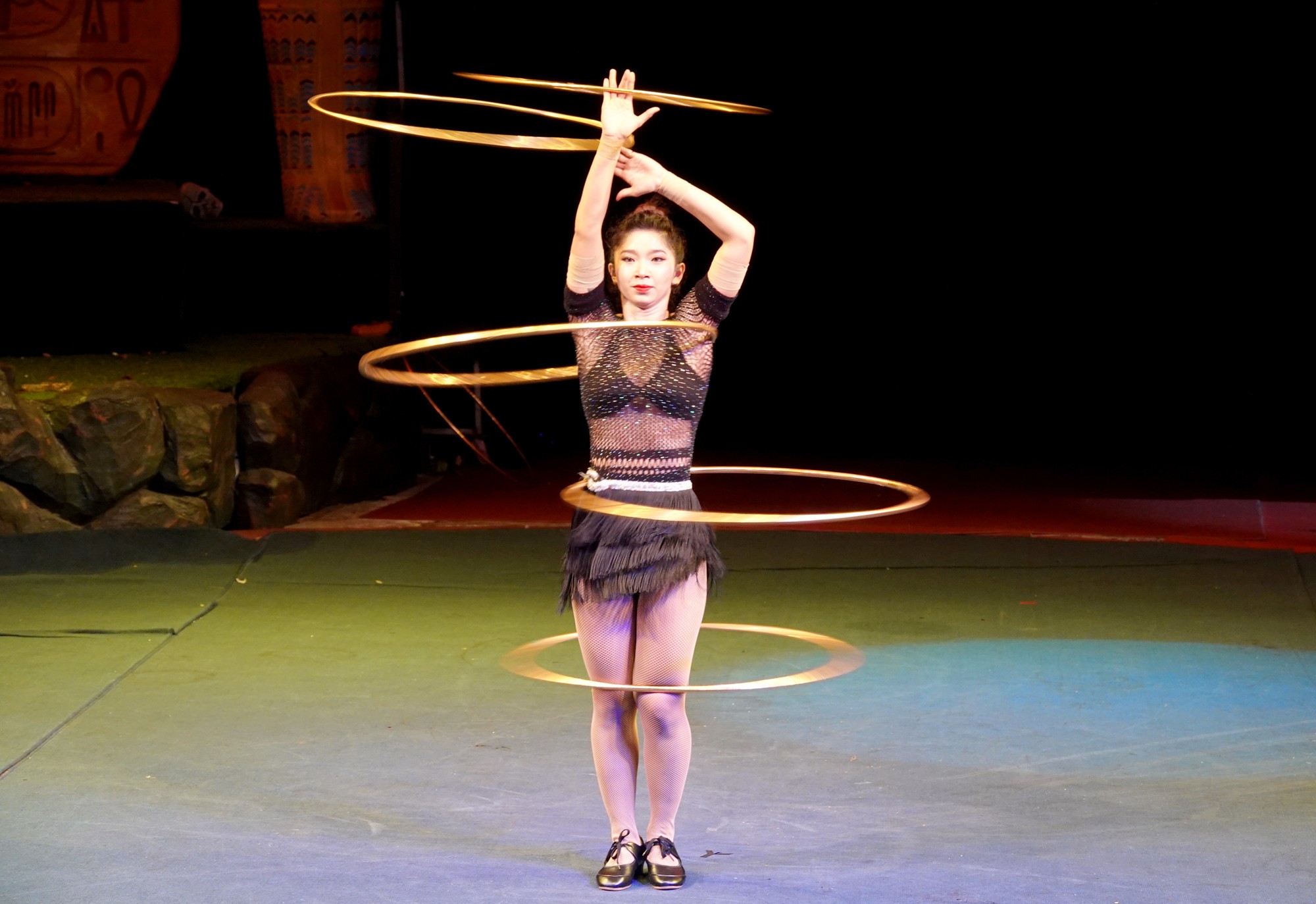 Tại buổi biểu diễn tốt nghiệp, các diễn viên – học viên đã lần lượt trình diễn 8 tiết mục đu vòng, lắc vòng, quay đĩa, trò khéo, quay thảm, lăn vòng, huấn luyện những chú cún thông minh và múa rối.
