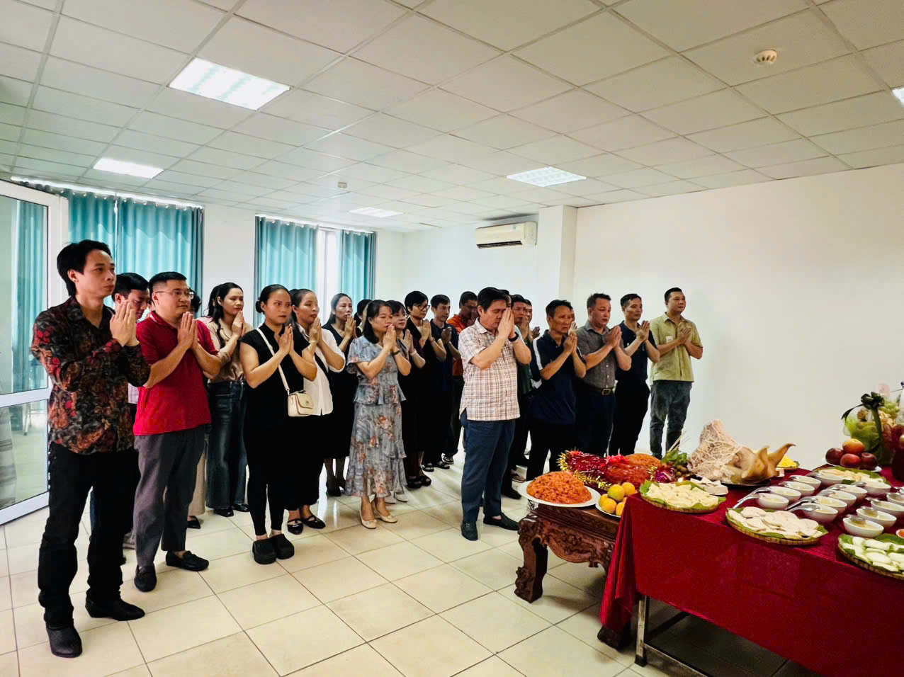 (Ban Giám hiệu cùng các giáo viên, nhân viên Nhà trường thắp hương cúng ngày Giỗ tổ ngành Sân khấu)