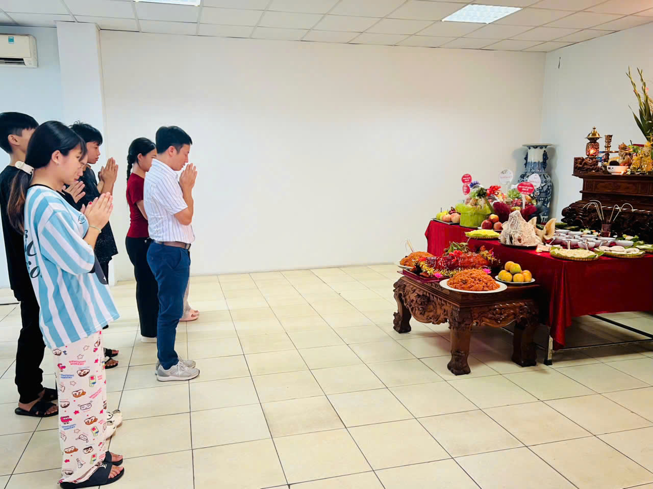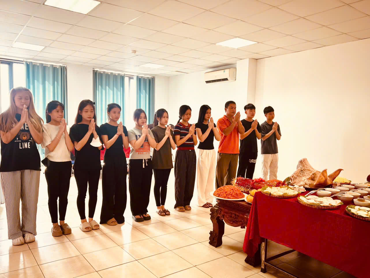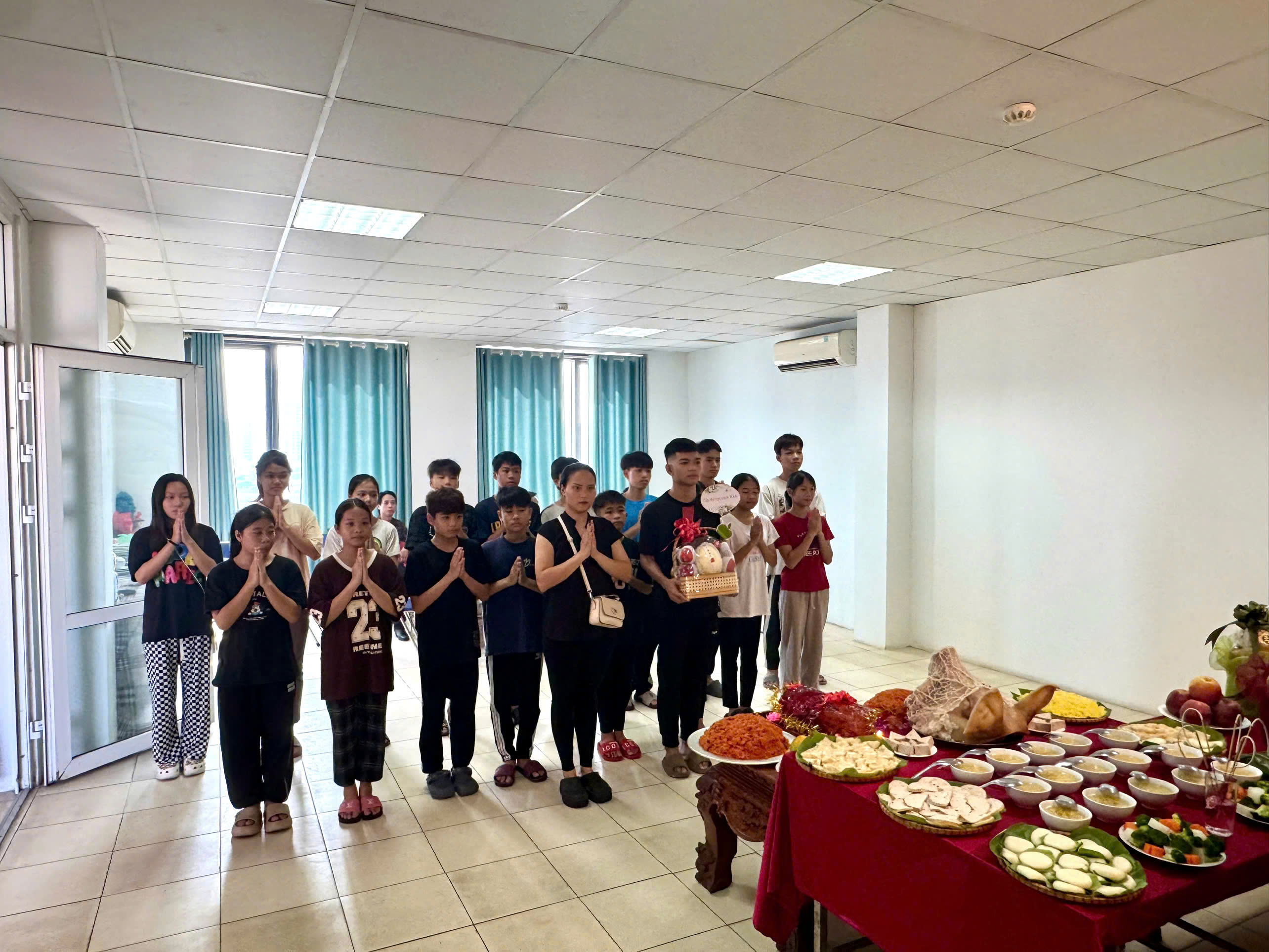 (Giáo viên chủ nhiệm và học sinh Khóa 43 thắp hương cúng ngày Giỗ tổ ngành Sân khấu)